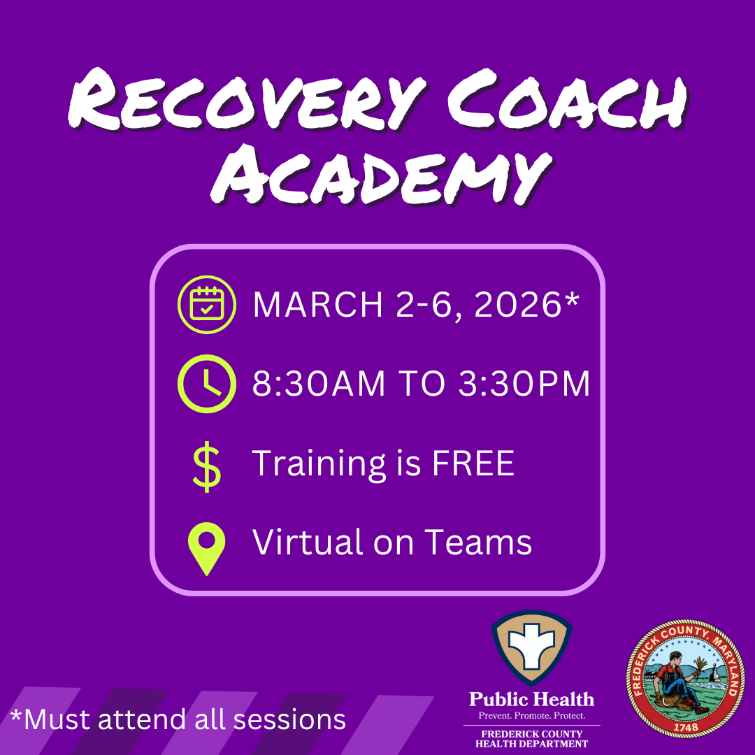 Any questions or to be added to the training roster please contact Jeffrey Thompson jthompson2@frederickcountymd.gov or Cher Rivers at crivers@frederickcountymd.gov